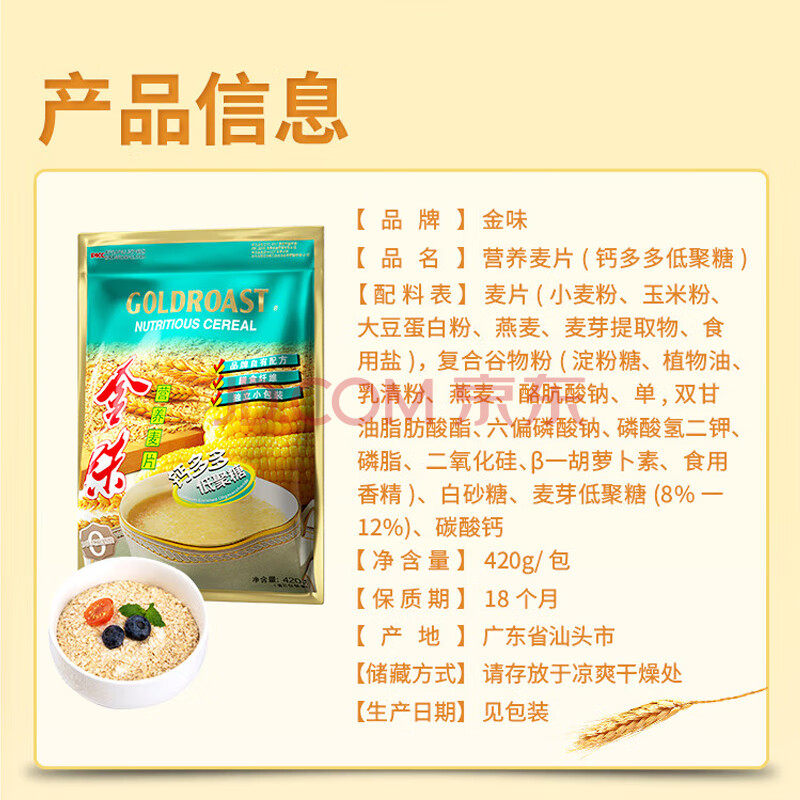 商品相册:金味钙多多420克(28g*15袋)营养燕麦片早餐冲饮麦片即食 代餐第