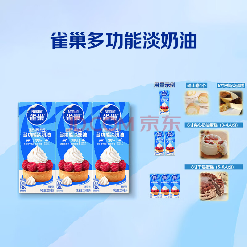 商品相册:雀巢(Nestle)烘焙原料淡奶油常温存储易打发蛋糕淡奶油250ml*3第
