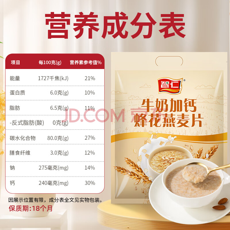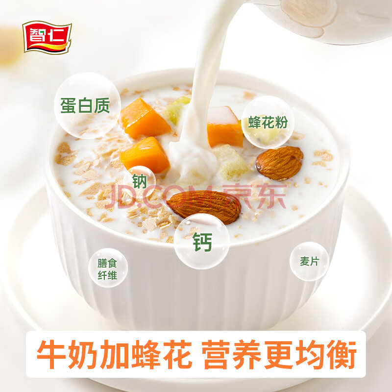 商品相册:智仁 牛奶加钙蜂花燕麦片独立小袋包装800g香浓奶味学生早餐 冲饮谷物第