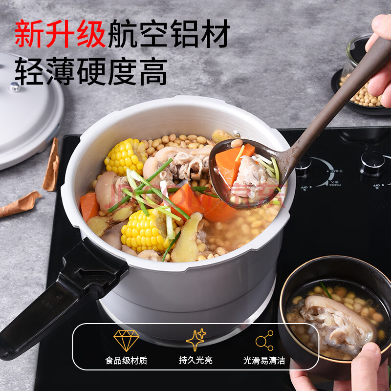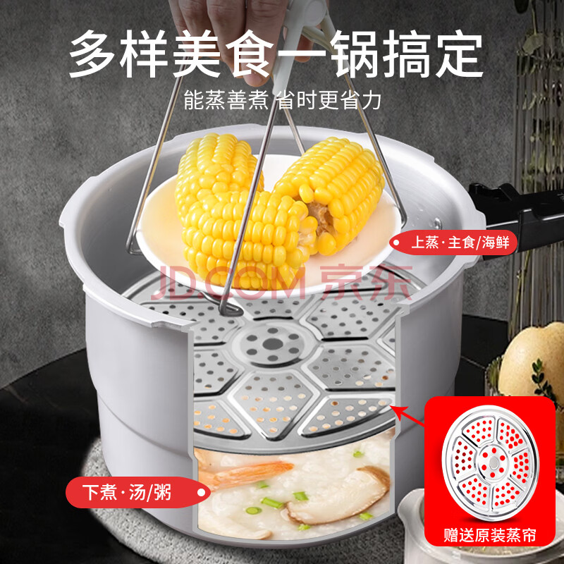 商品相册:双喜高压锅铝合金燃气电磁炉通用防爆家用压力锅20CM/4.8L【蒸格款】第