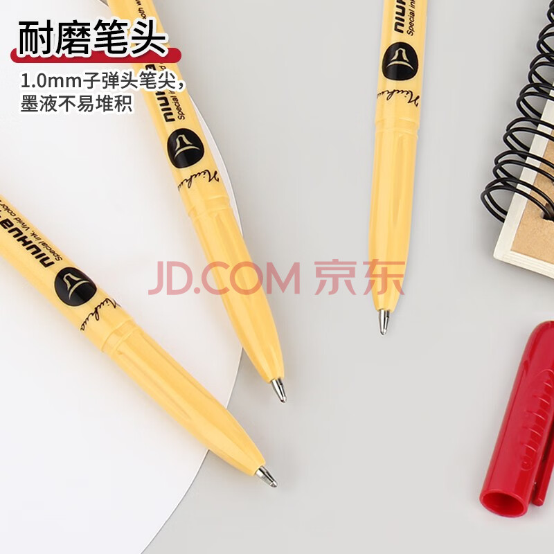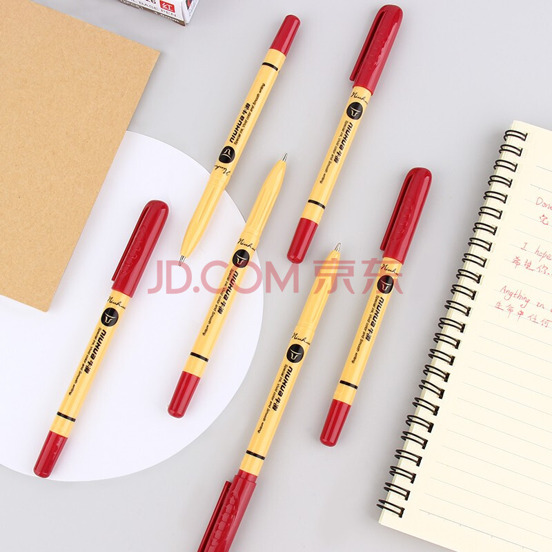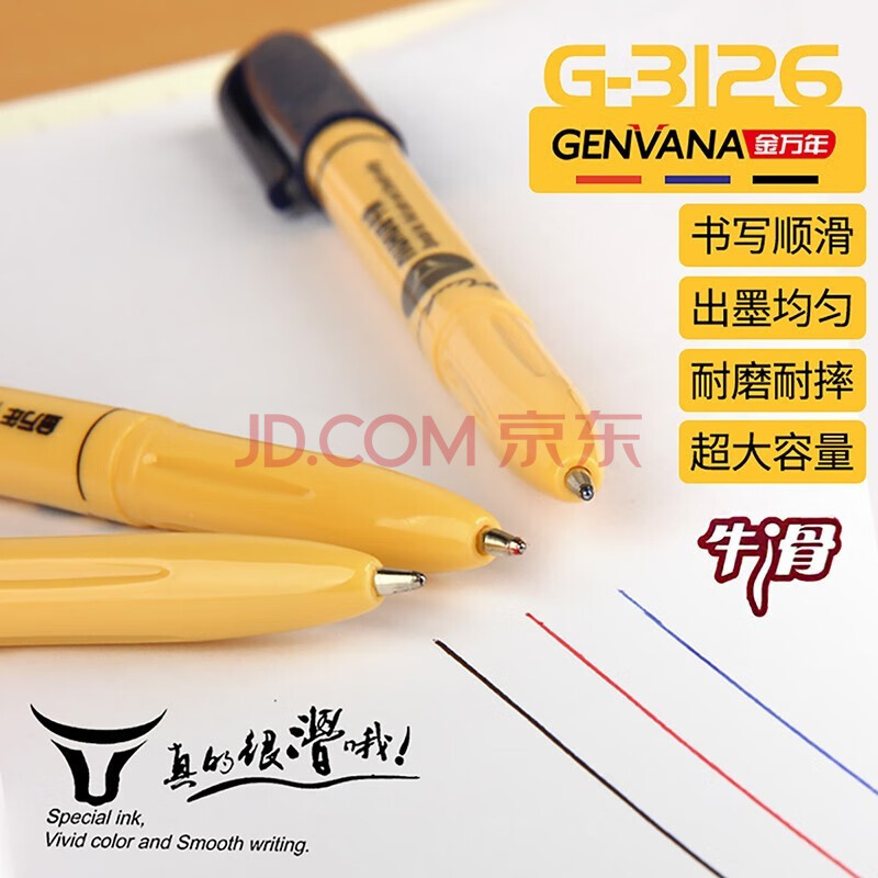 商品相册:金万年【12支中油笔】1.0mm红色牛滑圆珠笔拔帽 英文书法笔 原子笔办公用品G-3126-003第