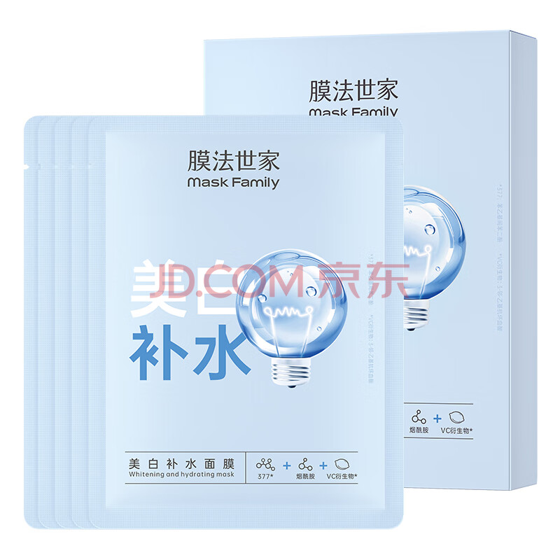 商品相册:膜法世家美白补水面膜5片 玻尿酸补水保湿烟酰胺提亮肤色 送女生第