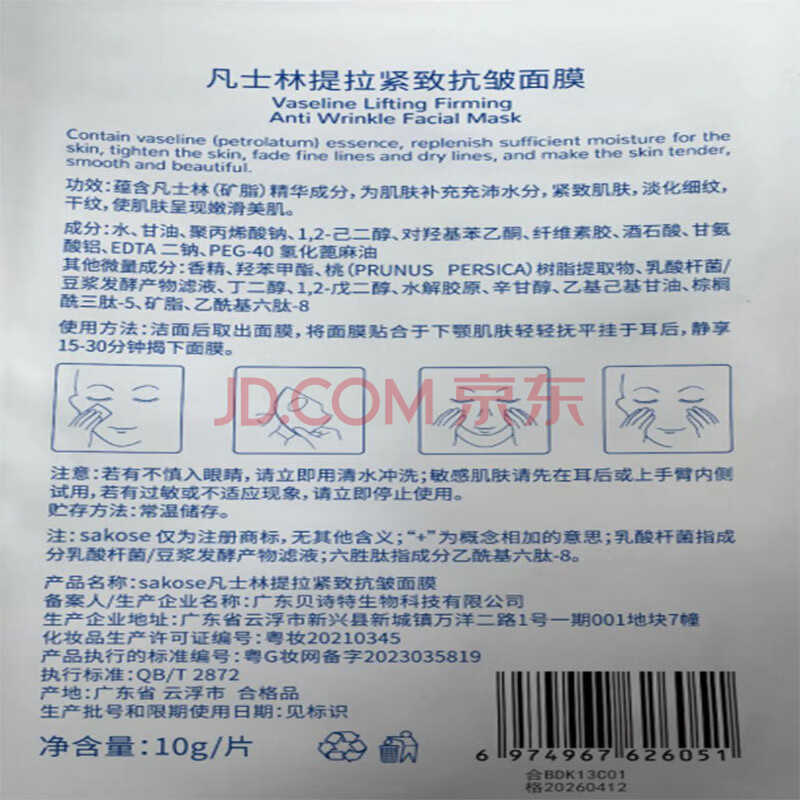 商品相册:sakose凡士林提拉紧致面膜6片装V绷带面膜挂耳脸部紧致修护男女用第