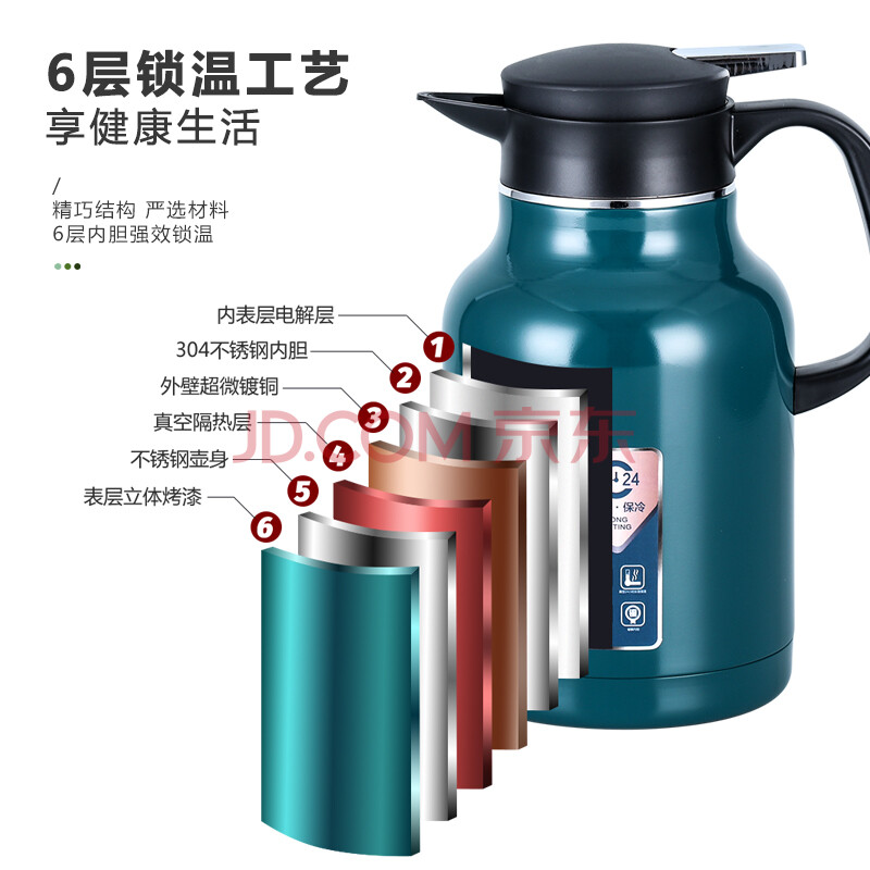 商品相册:裕樽(YUZUN).家用保温壶大容量不锈钢办公室真空暖水壶泡茶壶 1.6L 石榴红第