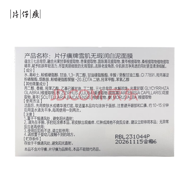 商品相册:片仔癀雪肌无瑕润白泥面膜 清洁提亮女神节礼物护肤品200g第