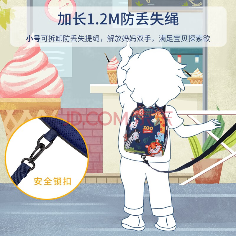 商品相册:Edison爱迪生幼儿园书包2-6周岁学前班户外轻便出游儿童小背包6001-5s第