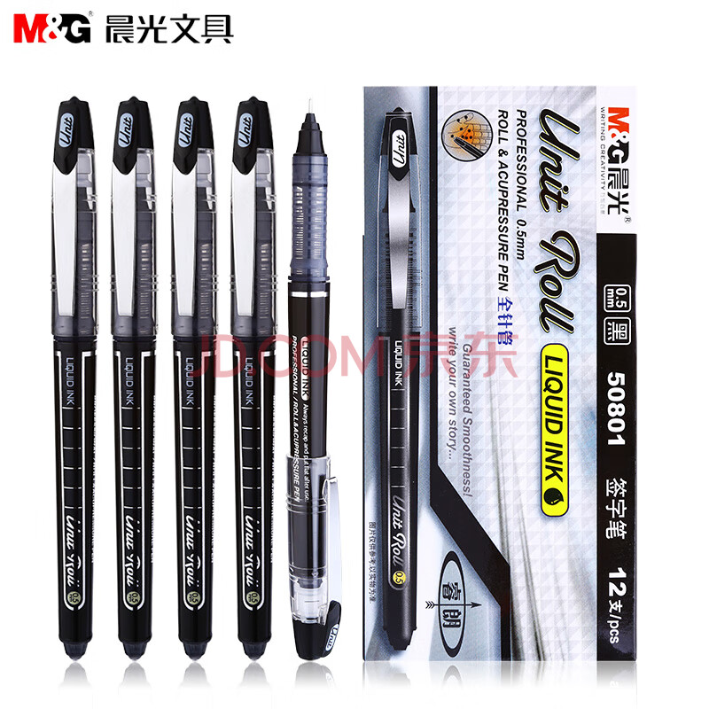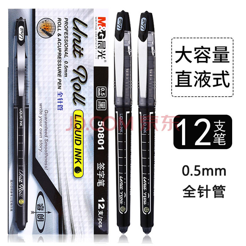 商品相册:晨光直液式水性签字笔睿朗插拔式ARP50801黑0.5 12支/1盒第