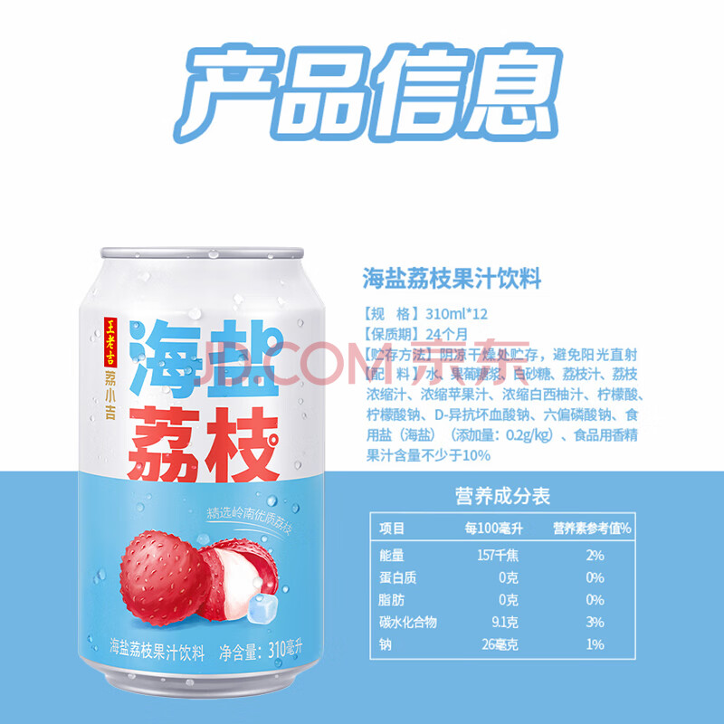 商品相册:王老吉海盐荔枝果汁饮料310ml*12罐荔小吉可盐可甜送好荔 热门商品推荐第