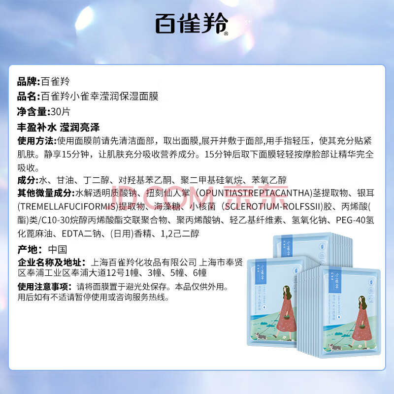 商品相册:百雀羚面膜小雀幸滢润保湿面膜30片肌肤解渴草本温和生日礼物第