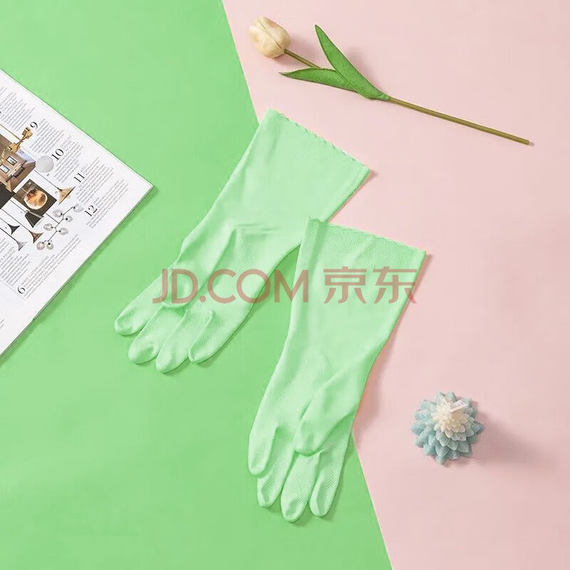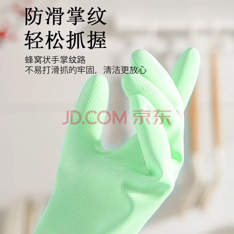 商品相册:奥伊达洗碗乳胶手套女防水橡胶乳胶薄款厨房耐用防水洗衣清洁家务L码2双第