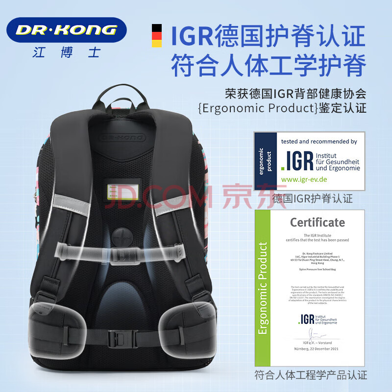 商品相册:江博士(DR·KONG)初中生书包女中学生护脊大学生减负背包超轻便大容量高中生双肩包第