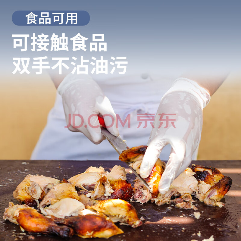 商品相册:乌斯京一次性手套丁腈手套100只大码橡胶食品级加厚耐用厨房防护丁晴白第