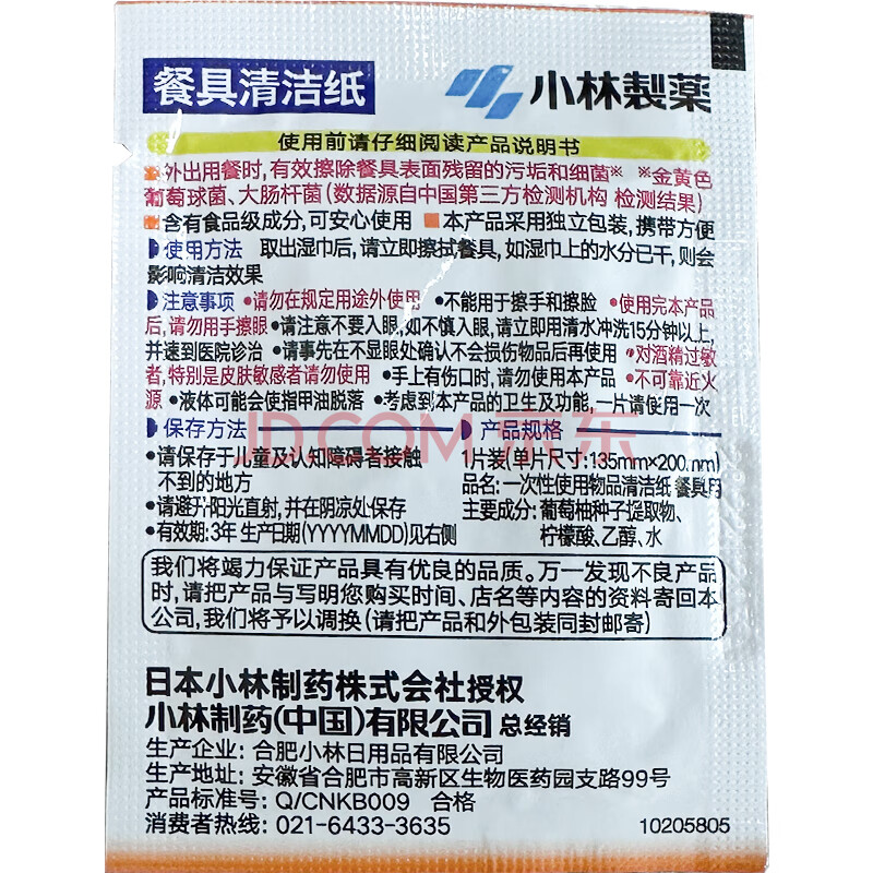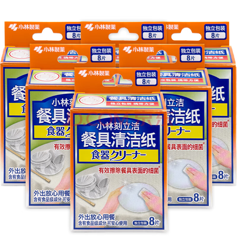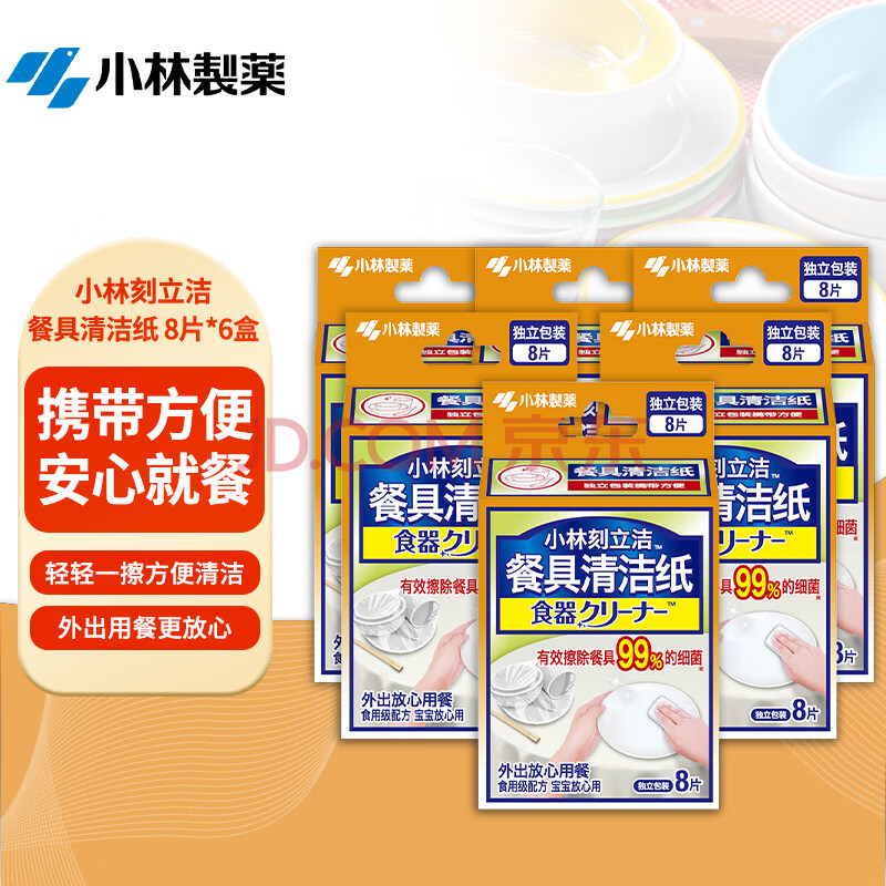 商品相册:小林制药(KOBAYASHI)刻立洁餐具清洁纸8片*6盒便携应急去污渍湿巾第