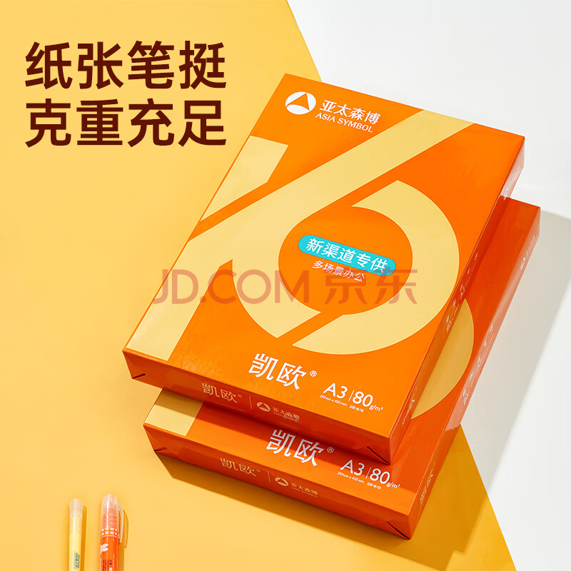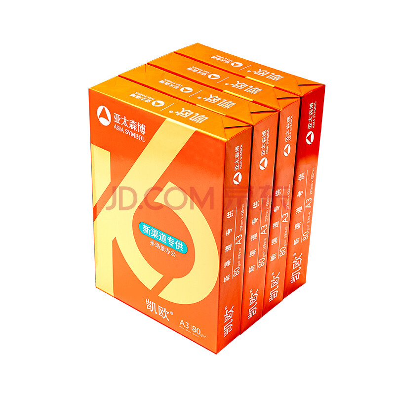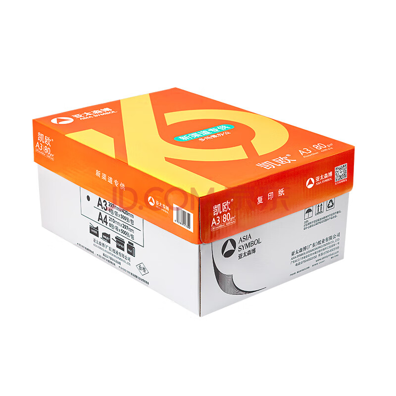 商品相册:亚太森博(Asia Symbol)凯欧80g A3复印纸 500张/包 4包/箱(2000张) 标准尺寸 厚实细腻 工程绘图双面打印第