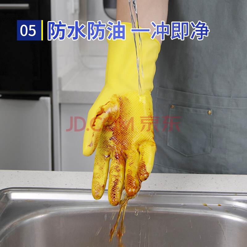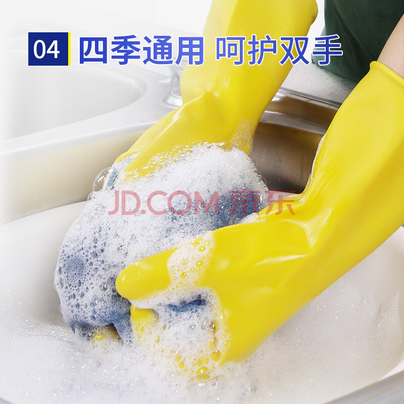 商品相册:宜之选橡胶牛筋手套S码4双特厚家务厨房洗碗洗衣乳胶清洁手套第