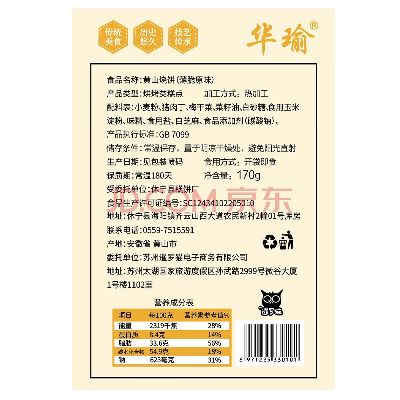 商品相册:华瑜薄酥脆烧饼170g 原味黄山特产小吃零食饼干糕点梅干菜扣肉酥饼第