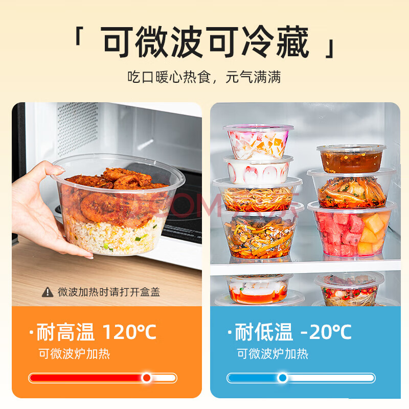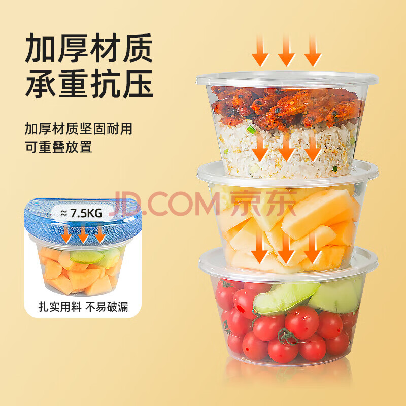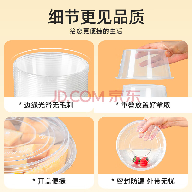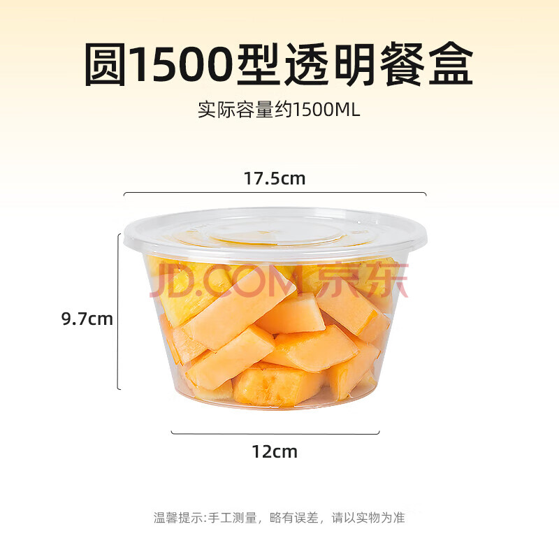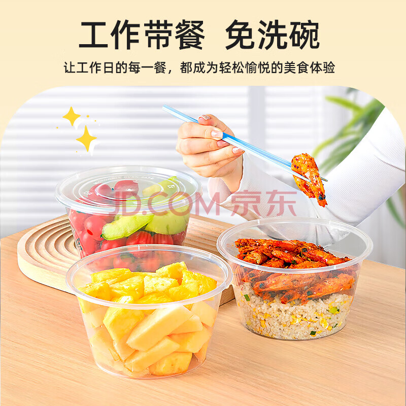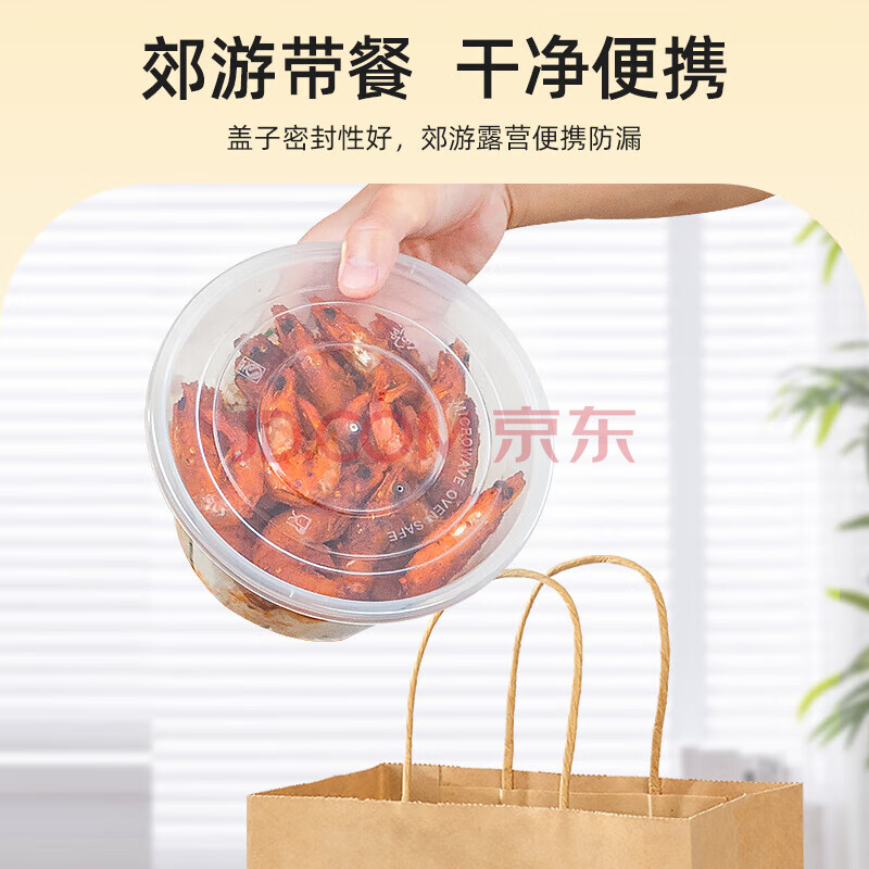 商品相册:特美居(temeiju)一次性饭盒圆形透明塑料快餐盒加厚带盖打包盒餐具50套装1500型第