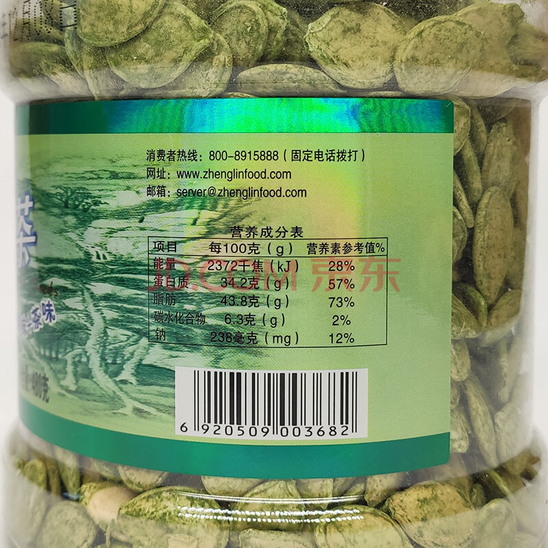 商品相册:正林绿茶味白瓜子480g/桶南瓜子大颗粒桶装坚果休闲零食小吃第