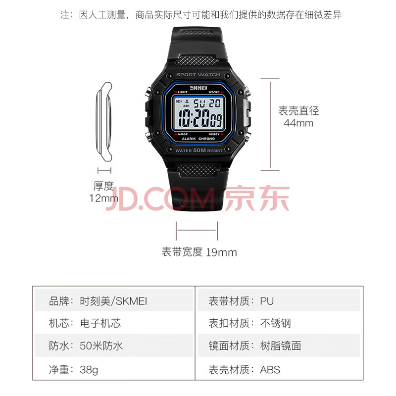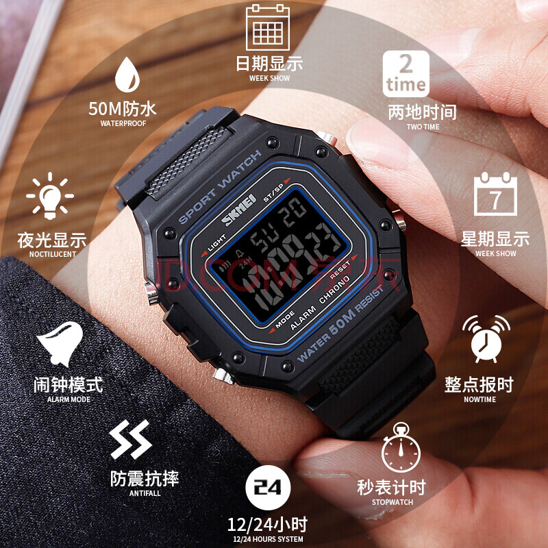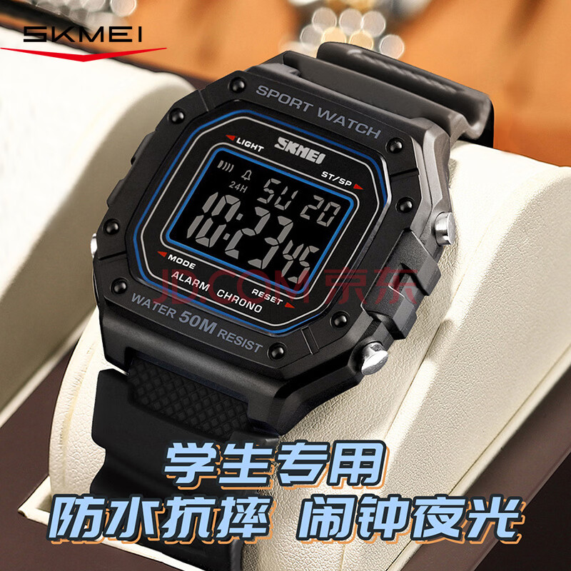 商品相册:时刻美(skmei)学生手表多功能初高中生青少年防水夜光闹钟电子表男小方表1496第