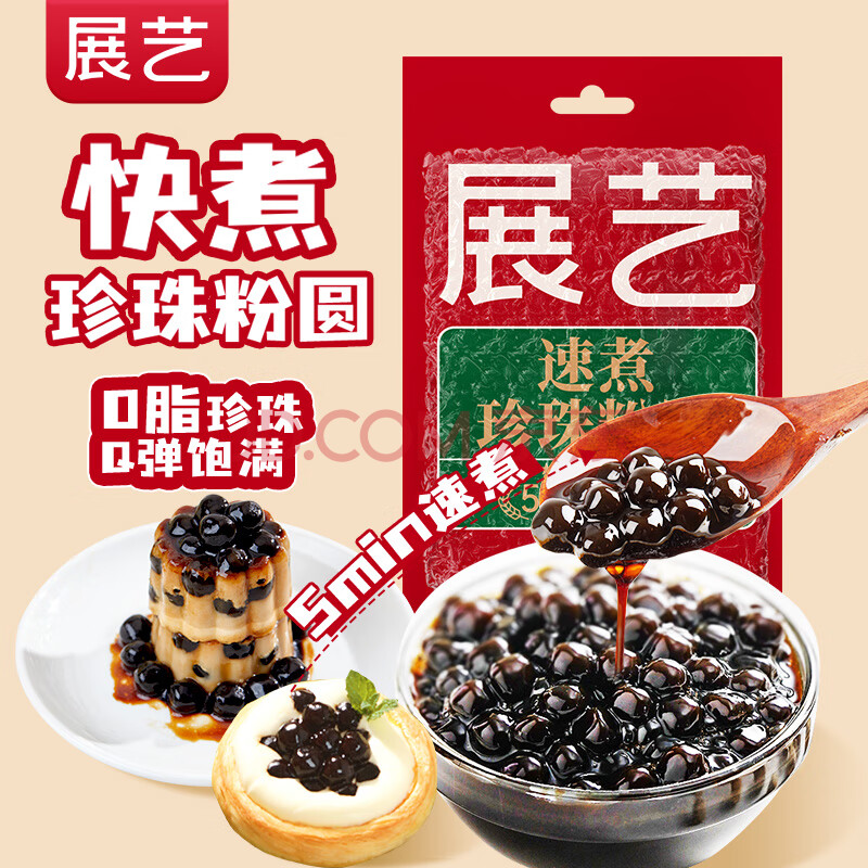 商品相册:展艺快煮黑珍珠粉圆 烘焙原料自制清补凉波霸黑糖甜品奶茶店专用 500g第1张/共8
