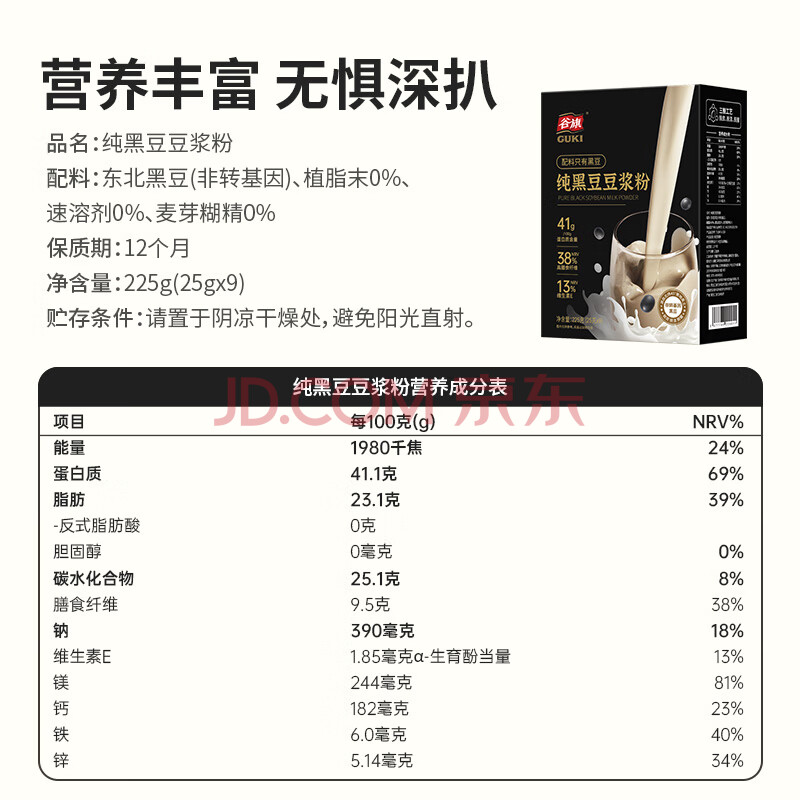 商品相册:谷旗 纯黑豆豆浆粉225g(9条装) 非转基因大豆营养早餐代餐粉孕妇第