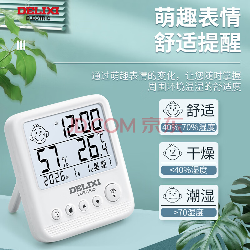 商品相册:德力西电气(DELIXI ELECTRIC)室内温度计外电子测温计婴儿房温度精准壁挂式大棚高精度温湿度计第