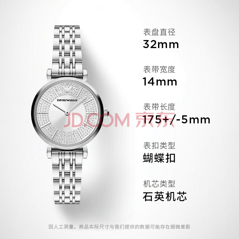 商品相册:EMPORIO ARMANI阿玛尼女士手表 满天星银色休闲女表生日礼物送女友AR11445第