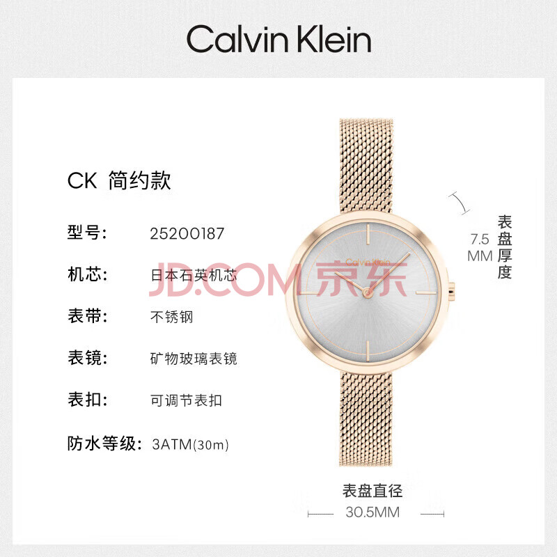 商品相册:Calvin KleinCK手表日光款钢带女士腕表女神节新年礼物25200187第