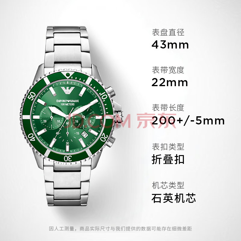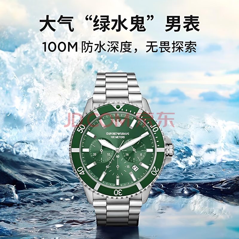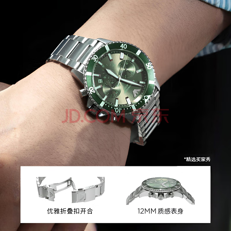 商品相册:EMPORIO ARMANI阿玛尼手表男士 绿水鬼钢带商务石英表 生日礼物送男友AR11500第