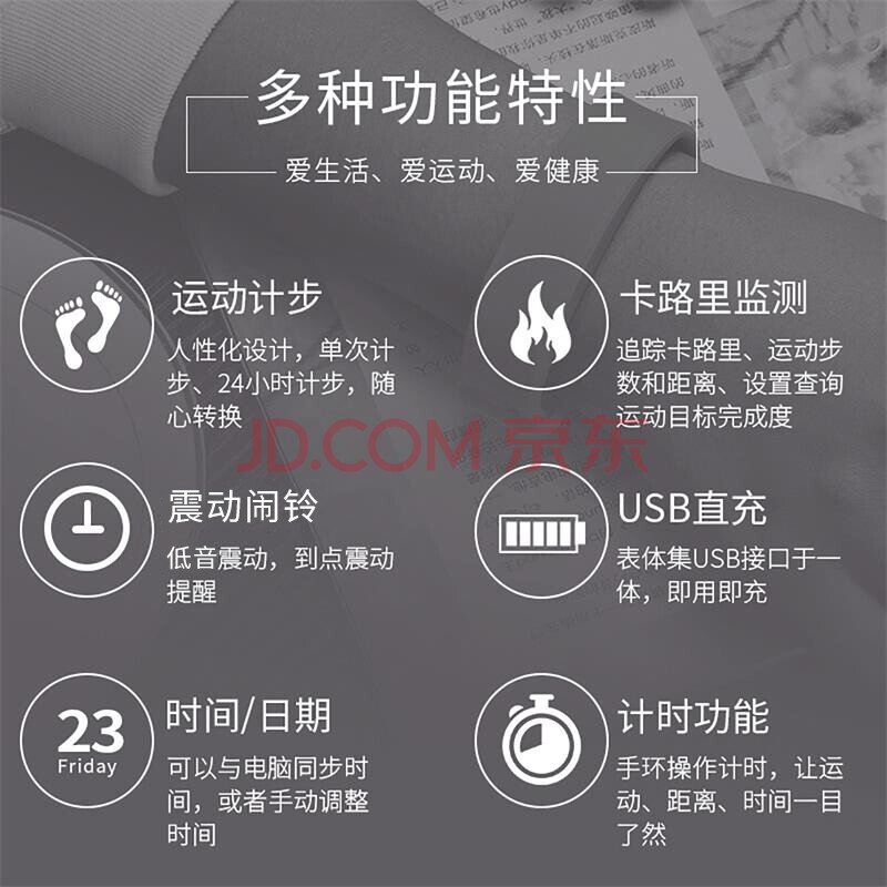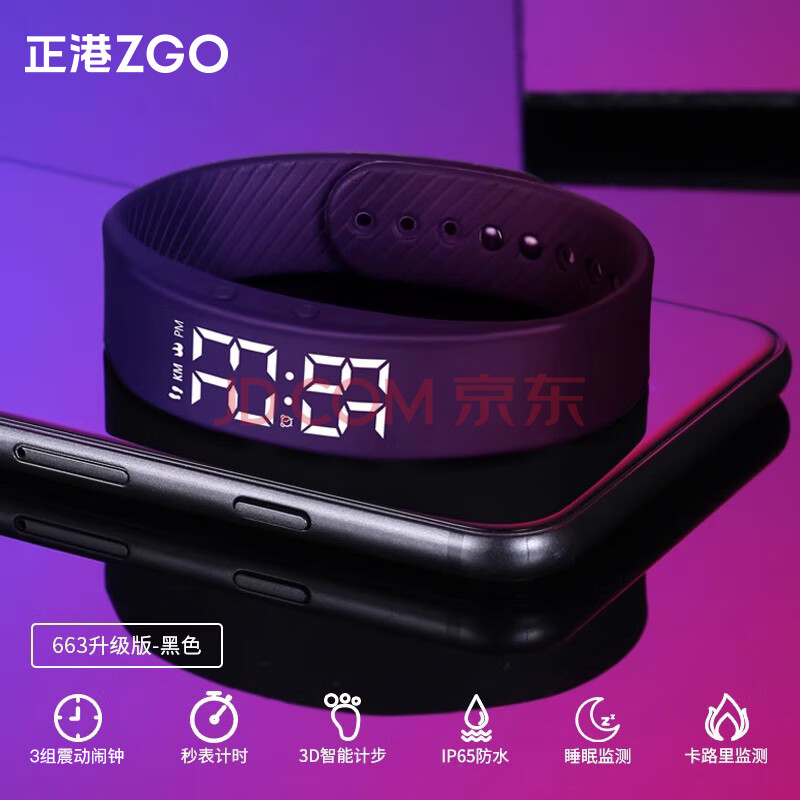 商品相册:正港(ZGO)中学生运动手环震动闹钟智能防水跑步高中生初中生专用手表男663第