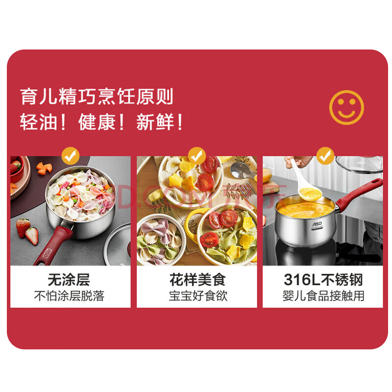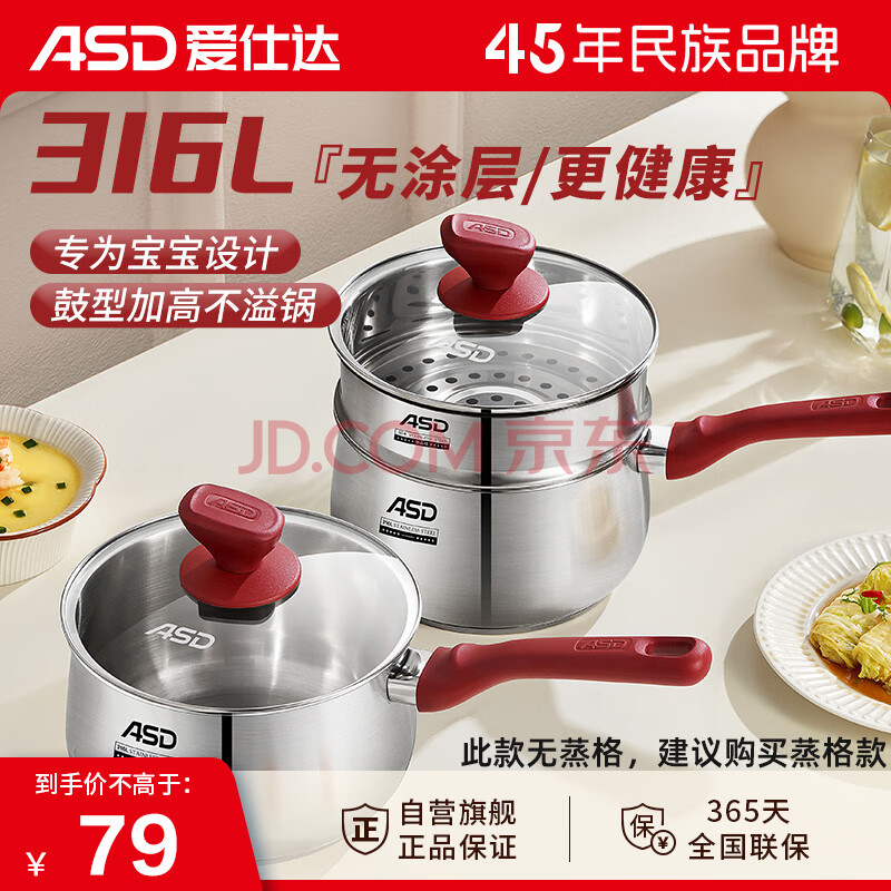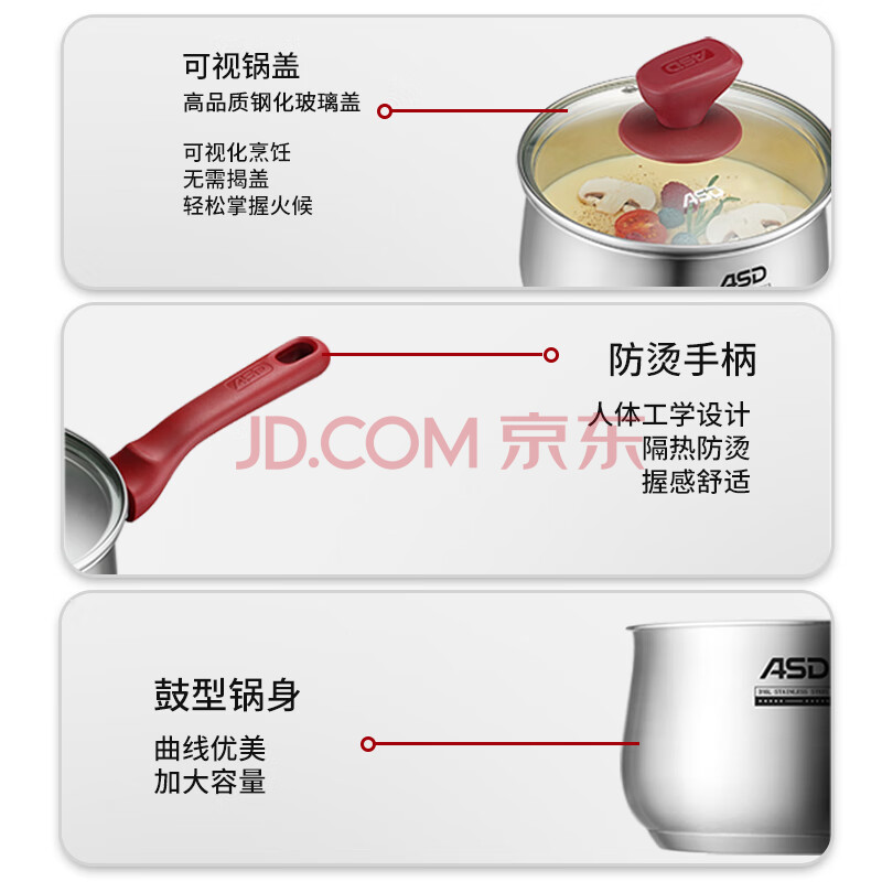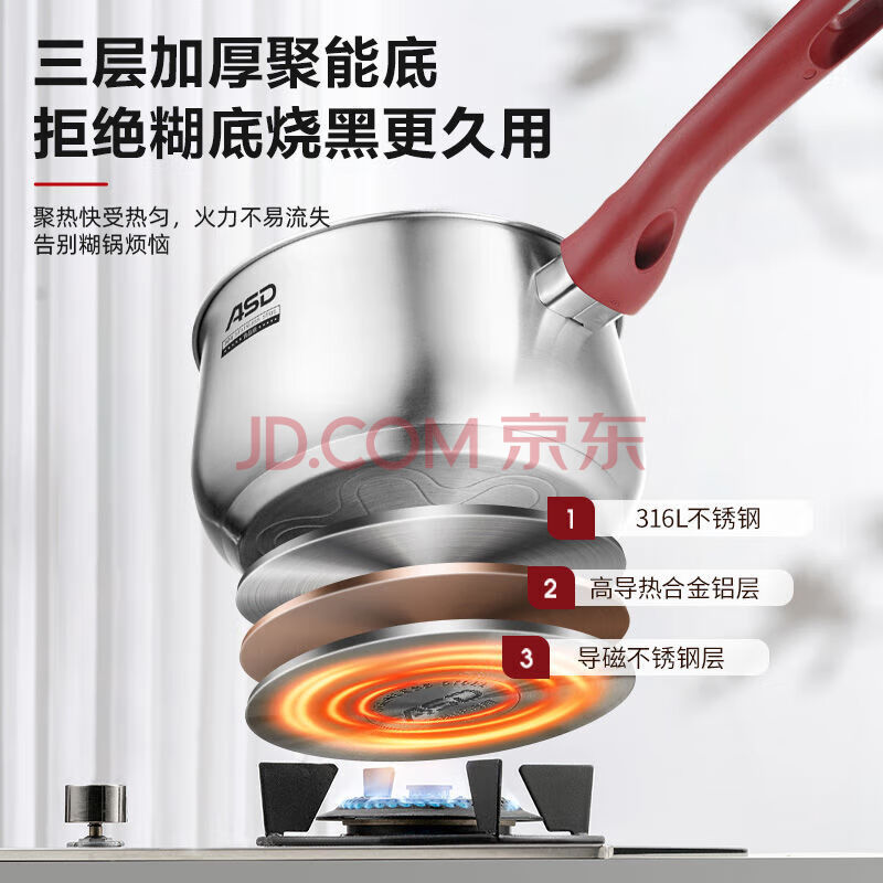 商品相册:爱仕达(ASD)奶锅316L不锈钢16CM小奶锅电磁炉燃气通用NS16B5WG第1张/共7