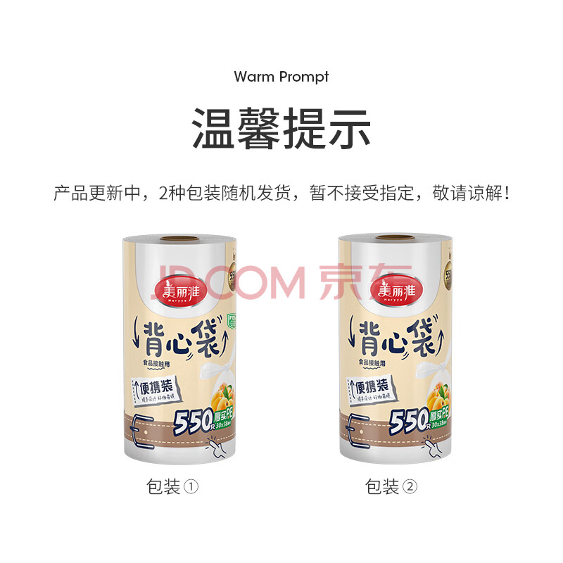 商品相册:美丽雅一次性保鲜袋食品级背心式550只大号38*30cm 冷藏分装袋加厚第