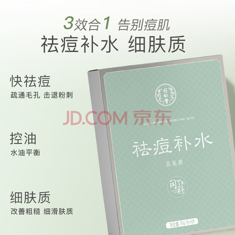 商品相册:同仁堂祛痘补水面膜30g*5 本草控油上火痘生理痘青春粉刺痘第