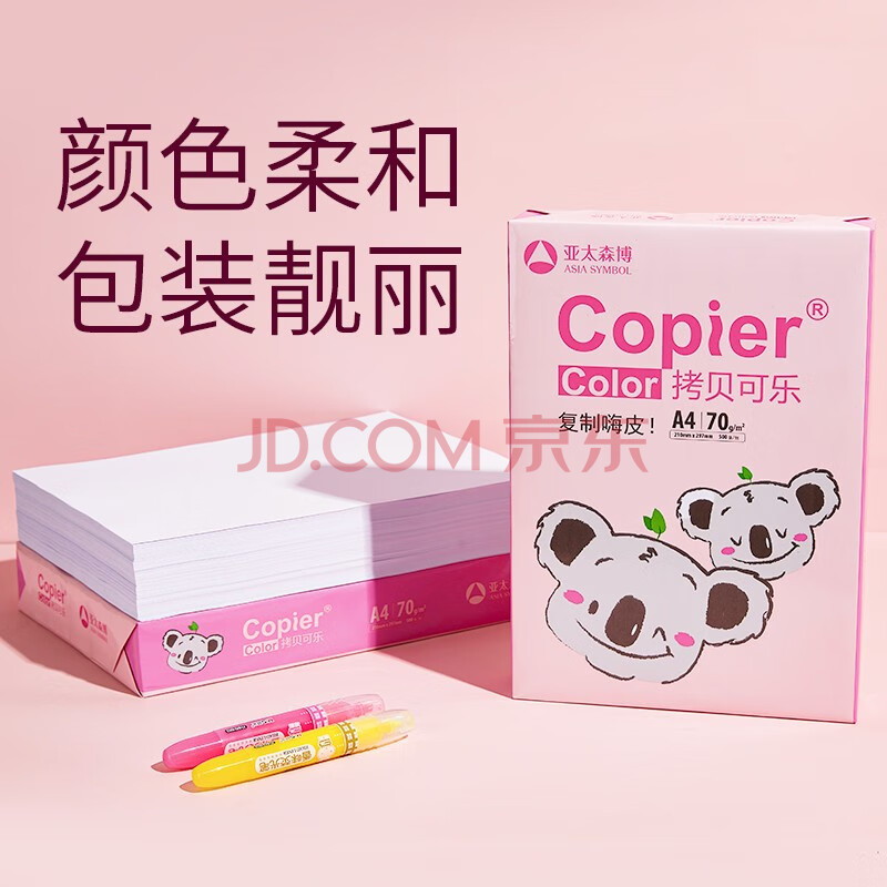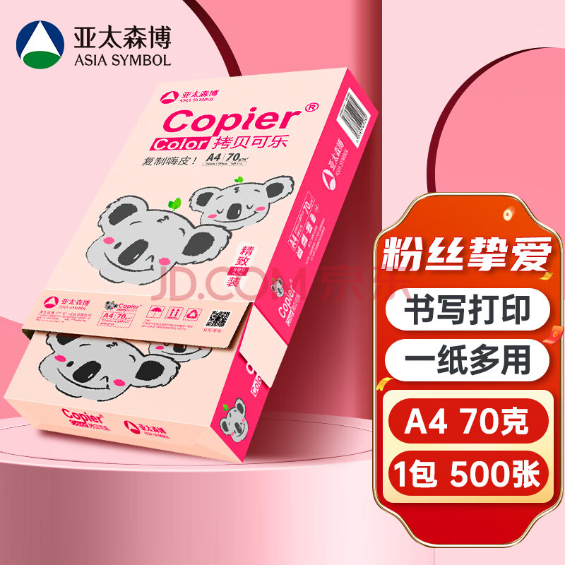 商品相册:亚太森博粉考拉A4打印纸 70g单包装 500张复印纸 双面打印资料 高性价比草稿纸【经济家用款】第