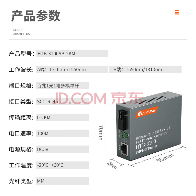商品相册:netLINK HTB-3100AB-2KM 百兆多模单纤光纤收发器 光电转换器 SC接口 2公里 一对第