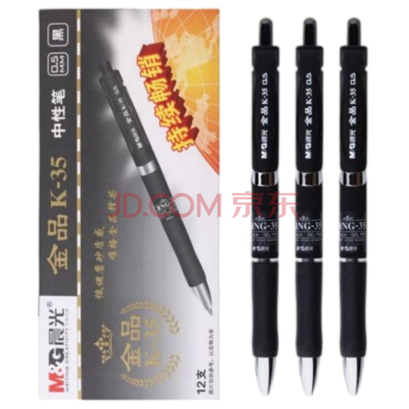 商品相册:晨光(M&G)AGPK3507按动中性笔按动笔 水笔 金品磨砂K35签字笔 0.5mm 黑色 12支/盒 1盒第