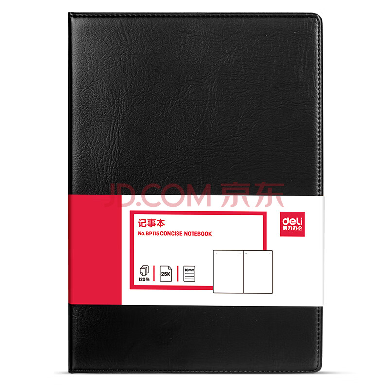 商品相册:得力(deli)(deli)25K120张大号商务经典皮面本办公用品 会议记事本日记本笔记本子文具 黑BP115第