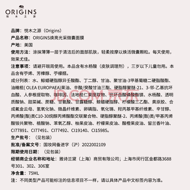 商品相册:悦木之源(Origins)爆珠奶昔发光免洗面膜75ml提亮肤色补水保湿锁水生日礼物送女友第