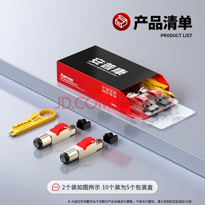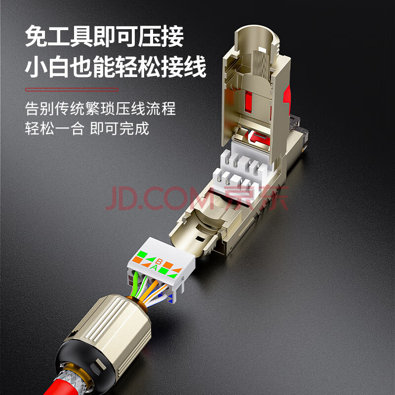 商品相册:安普康(AMPCOM)八类免打水晶头 CAT8免压网络镀金锌合金网线线接头 8类万兆电竞5G连接器 2个 AMC8002T第
