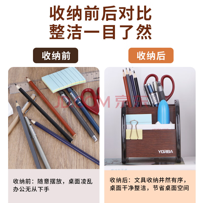 商品相册:优必利 木质笔筒桌面收纳盒 办公桌整理架商务 红木纹笔筒 6005A 第