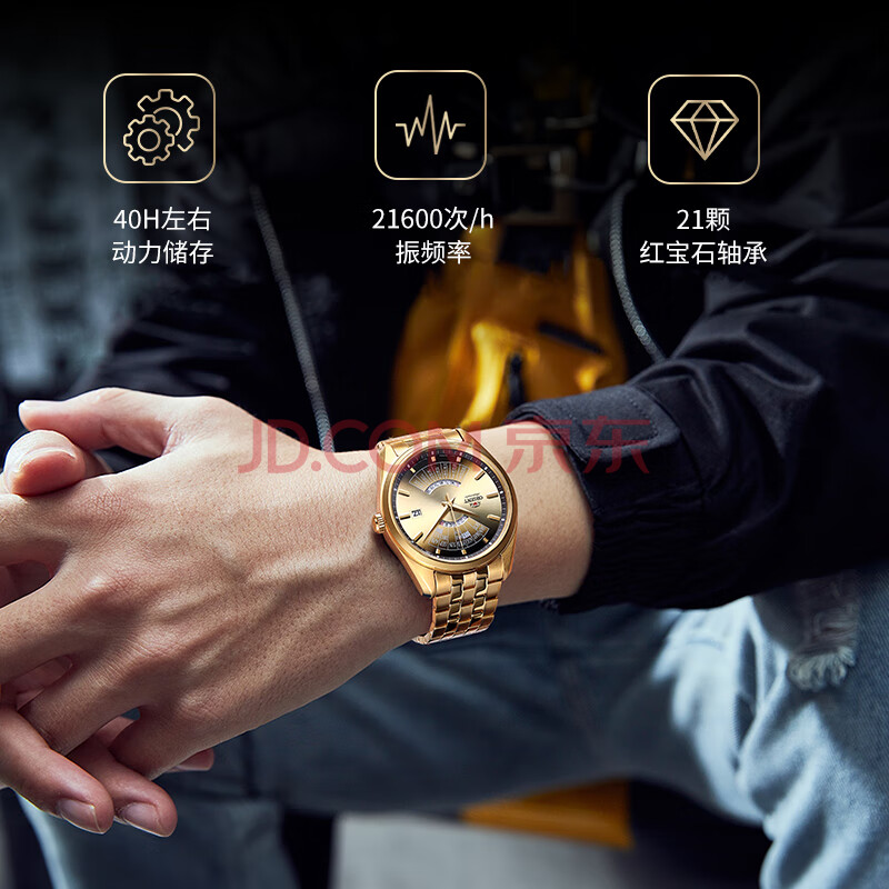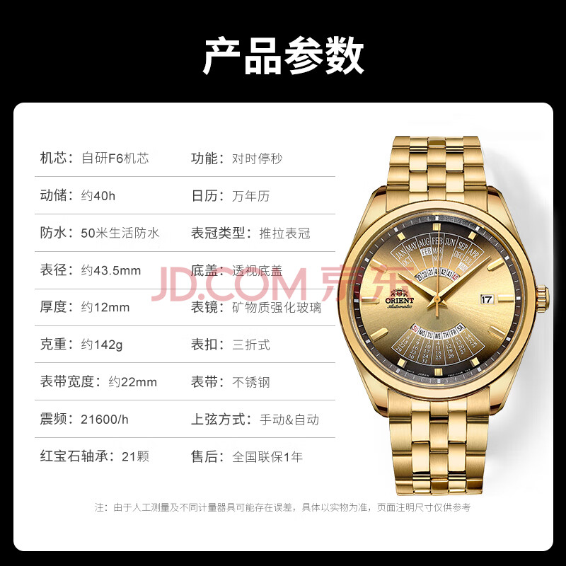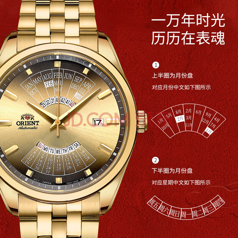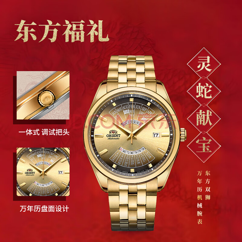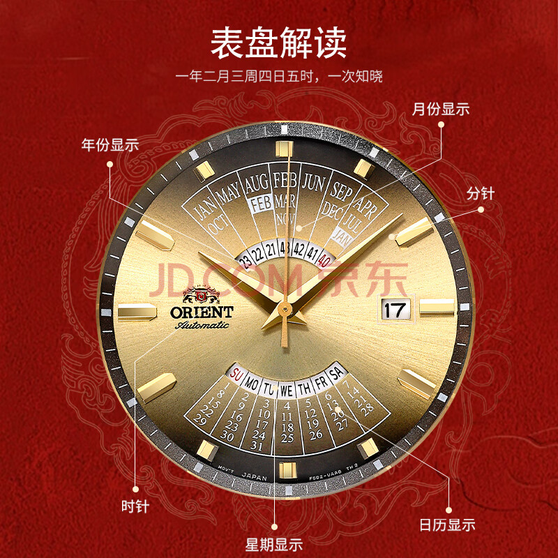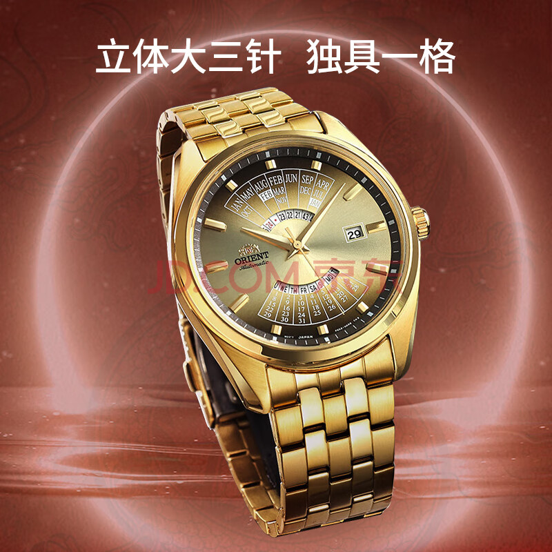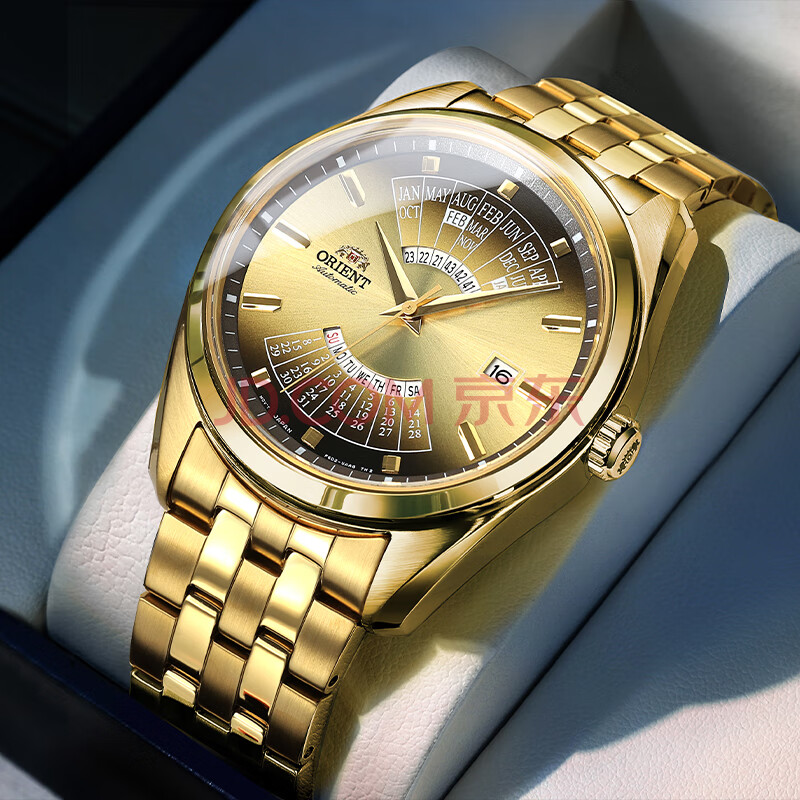 商品相册:ORIENT东方双狮手表进口全自动机械表日本万年历金表大表盘男表生日礼物第