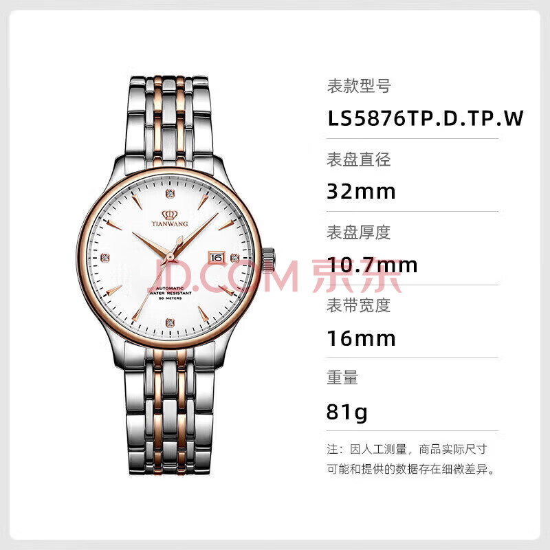 商品相册:天王(TIAN WANG)手表女士 生日礼物昆仑系列钢带机械女表LS5876TP.D.TP.W第