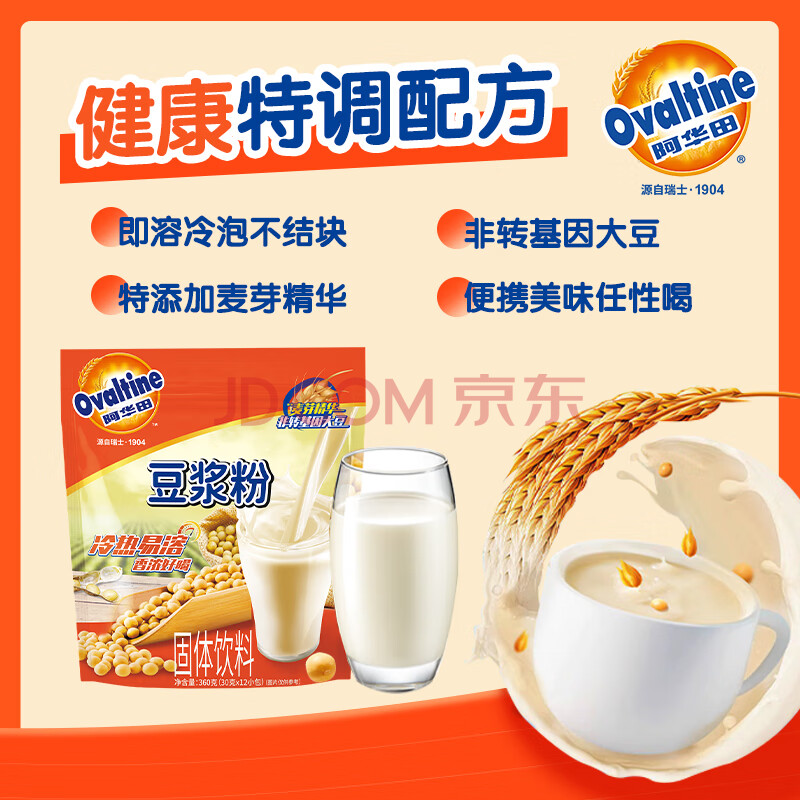 商品相册:阿华田(Ovaltine)原味豆浆粉随身装360g(30g*12包)早餐非转基因大豆冷泡不结块第