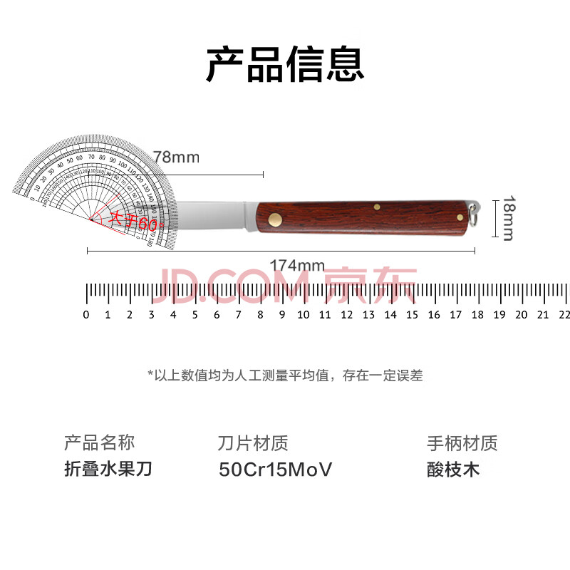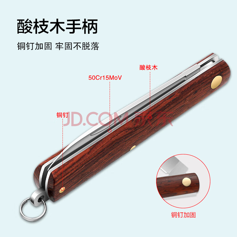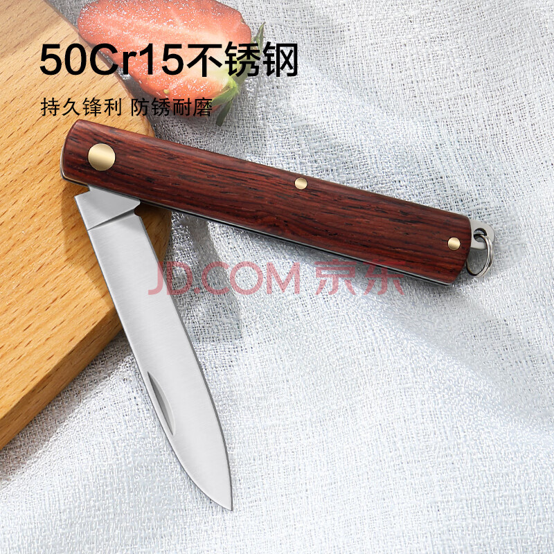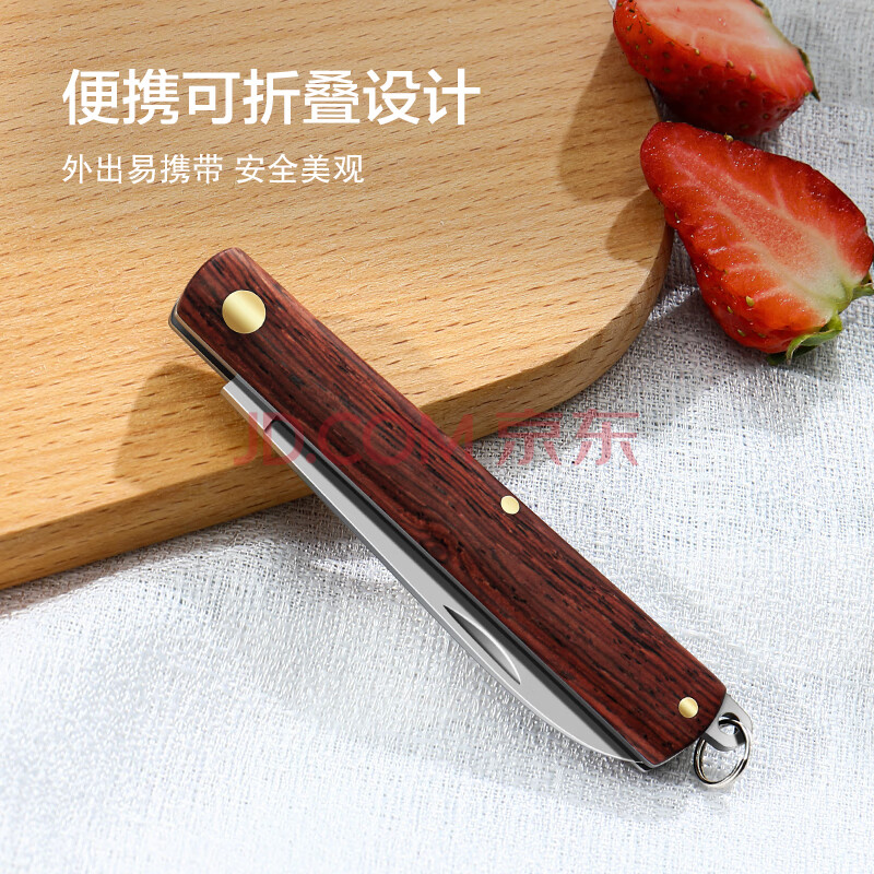 商品相册:京东京造 水果刀 削刮皮家用进口酸枝木不锈钢可折叠【优质5铬钢】第1张/共9