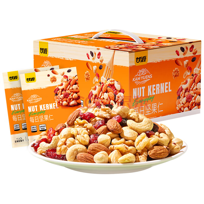 商品相册:甘源每日坚果炒货礼盒综合果仁C休闲零食果干核桃腰果独立小袋400g/盒第