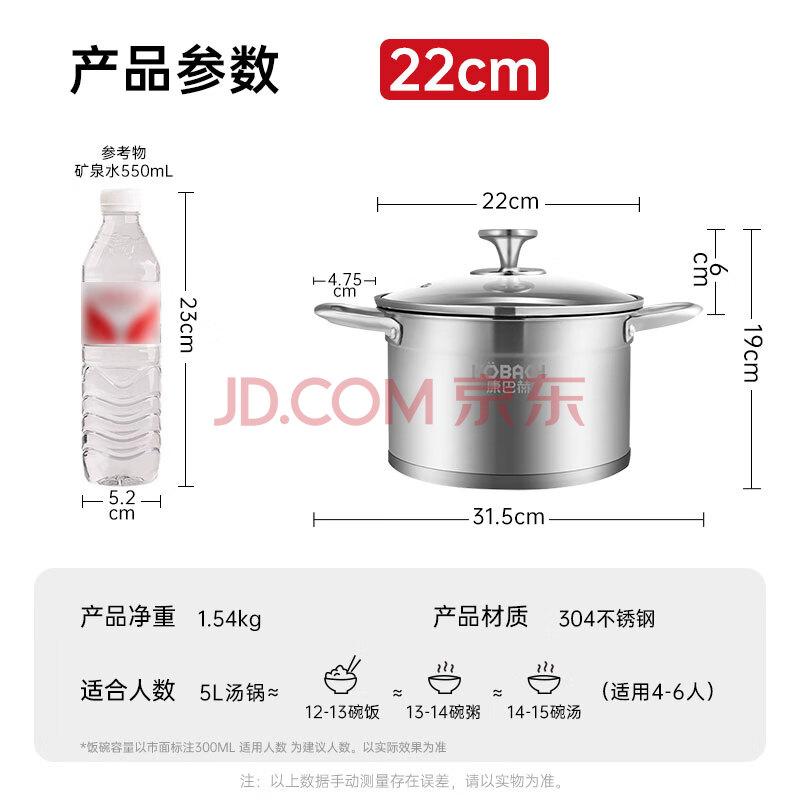 商品相册:康巴赫304不锈钢汤锅双耳汤锅炖锅可视锅盖22cm电磁炉明火通用TOUC22A1第
