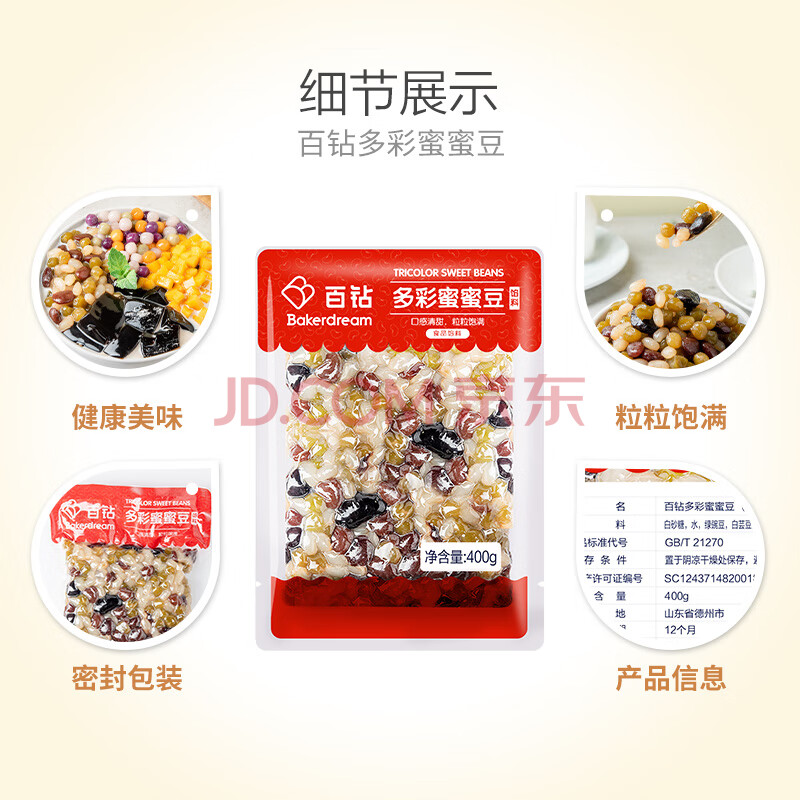 商品相册:百钻多彩蜜蜜豆400g家用烘焙红豆奶茶甜品吐司面包配料原料第