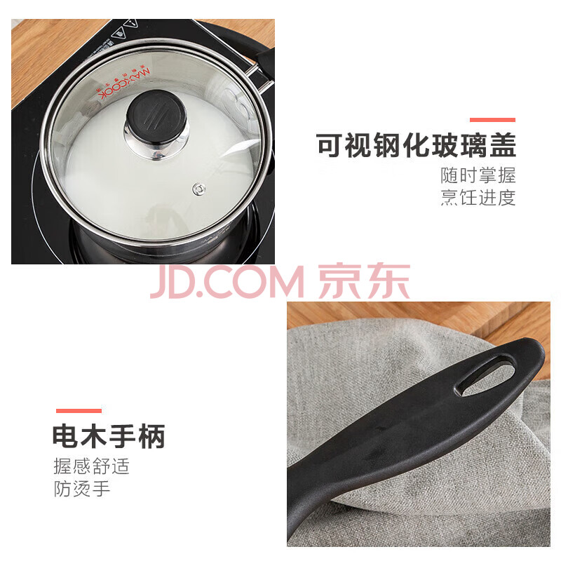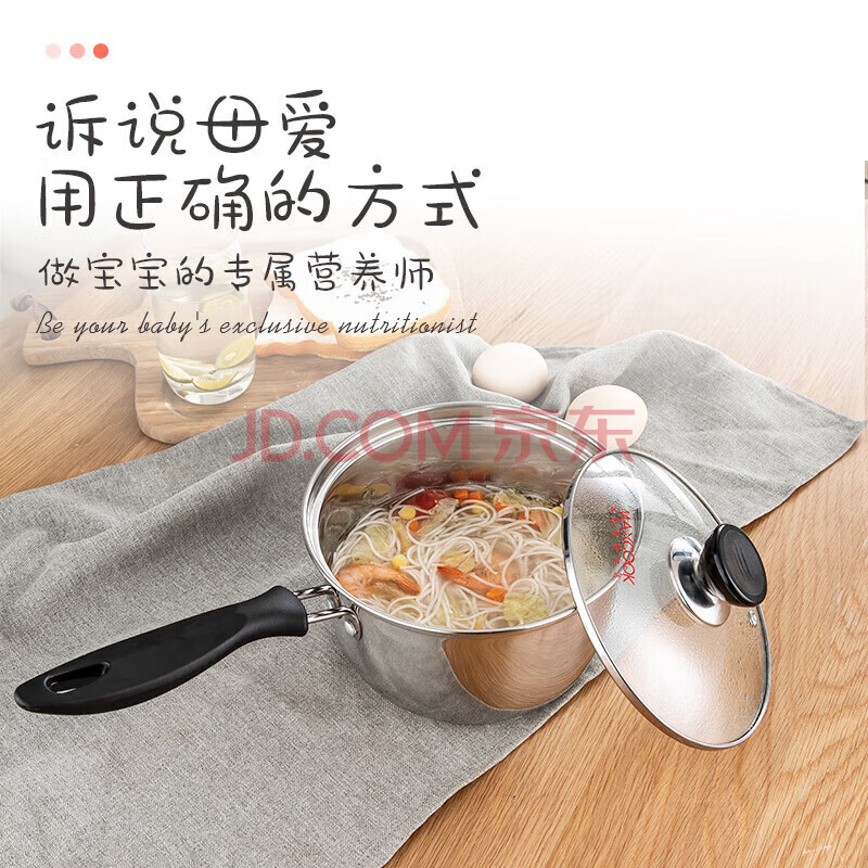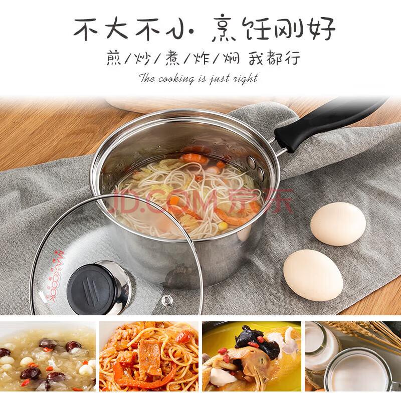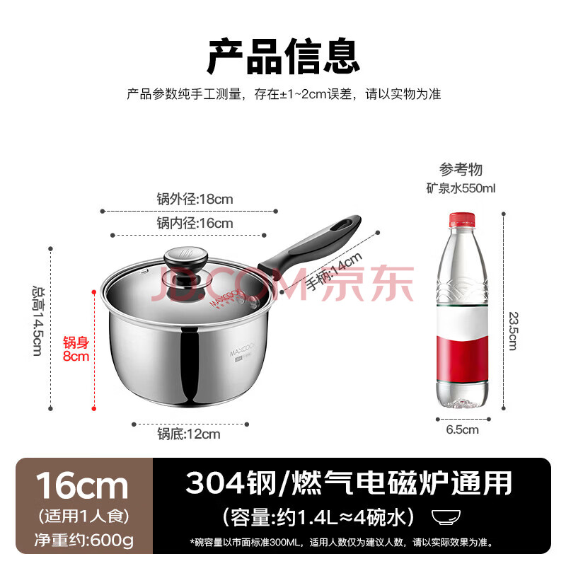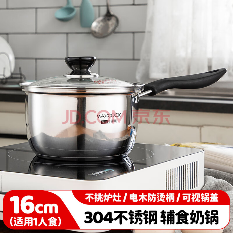 商品相册:美厨(MAXCOOK)奶锅 304不锈钢奶锅汤锅16cm 泡面煮奶辅食锅 加厚复合底 LN116第