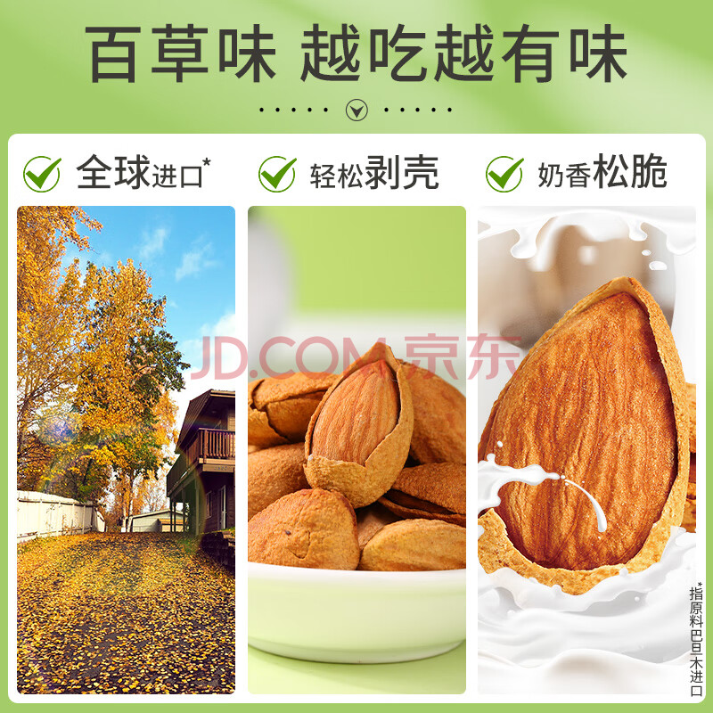 商品相册:百草味巴旦木100g 奶油味 每日坚果干果休闲零食扁桃仁 新老包装随机发第