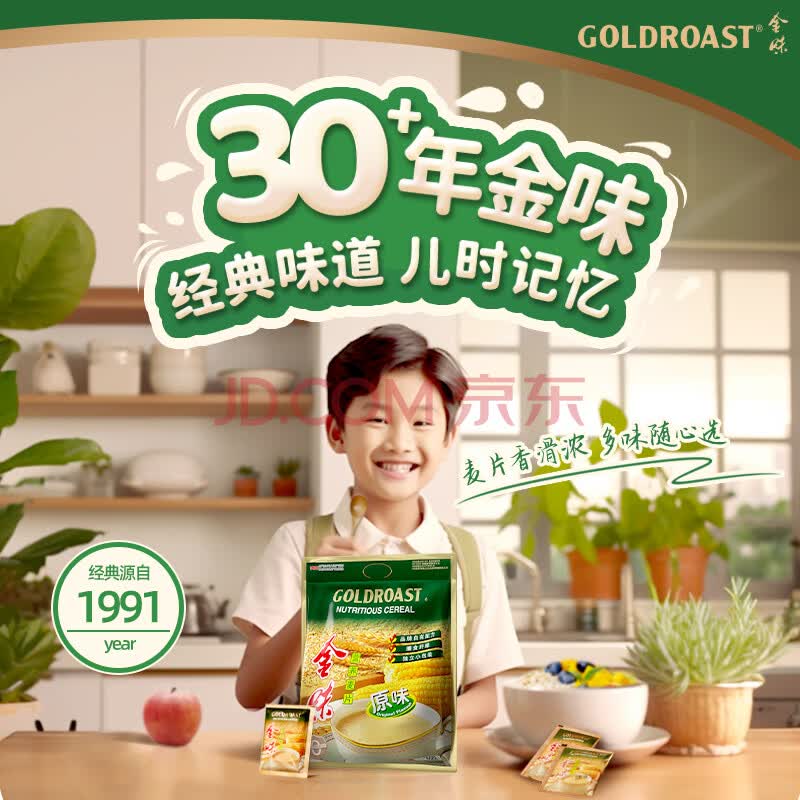商品相册:金味原味麦片600g(30g*20袋)营养早餐冲饮谷物 即食燕麦片第1张/共8